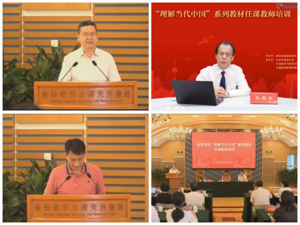 8月5日,中宣部領導、教育部領導、馬克思主義理論專家、教材編寫團隊專家就習近平新時代中國特色社會主義思想重要方面、“三進”工作指導思想與總體目标、《理解當代中國》教學要求等方面進行了講解,幫助教師提升思想認識,深入理解教材内涵。8月6日,教材編寫團隊專家就各語種教材的編寫理念、教學設計、授課建議等進行了講解,對讀寫、演講、翻譯等課程的具體實施進行教學示範,幫助教師熟悉教材内容,做好備課授課準備。